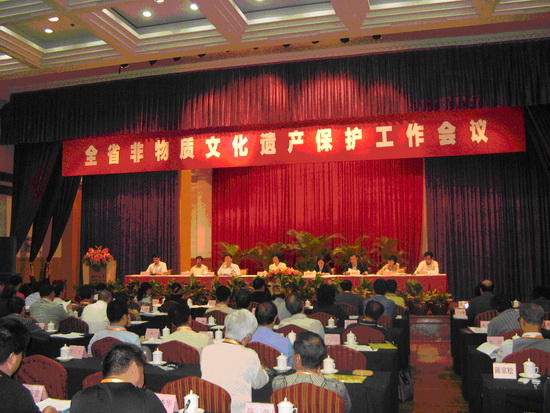 廣東省副省長雷于藍(主席臺左四)、省文化廳廳長方健宏(主席臺左三)、省委宣傳部副部長顧作義(主席臺右三)等領導出席會議并講話