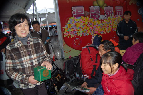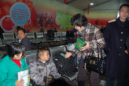 我司黨委書記鄭楠率領潘高壽手牽手義工隊人員到現場參加活動,為有需要的旅客送去關懷和溫暖,潘高壽潤喉糖特別受到了人們的歡迎。