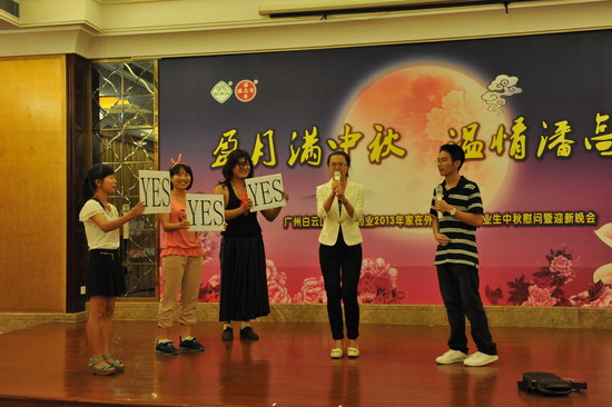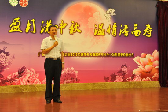 2013917日,白云山潘高壽藥業公司舉辦“盈月滿中秋 溫情潘高壽”——2013年家在外未婚高校畢業生中秋慰問暨迎新晚會。