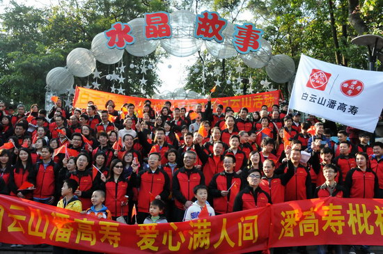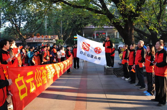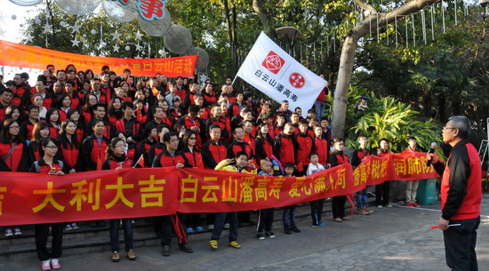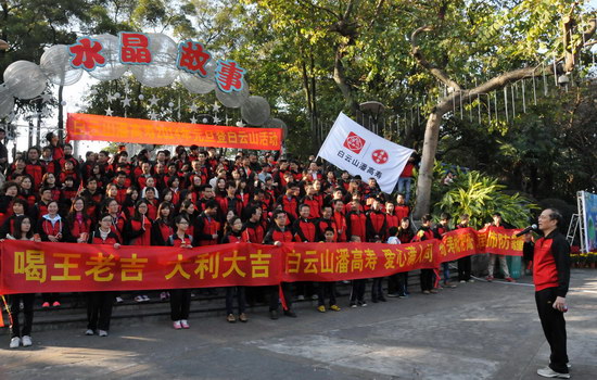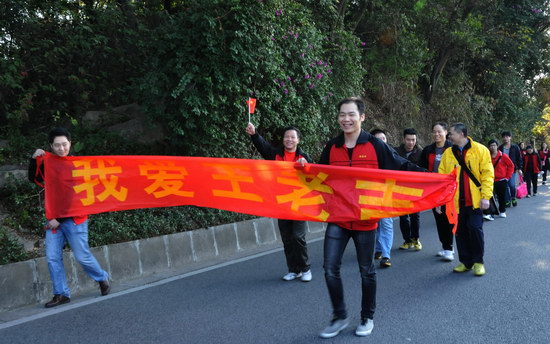 山頂公園上,憑歌寄意,“團(tuán)結(jié)就是力量”、“走進(jìn)新時(shí)代”……歌聲響徹白云之巔,表達(dá)出白云山潘高壽人的團(tuán)結(jié)一致、豪情萬(wàn)丈、信心滿懷。欣賞風(fēng)景,“踏破青山人未老,風(fēng)景這邊獨(dú)好”,登高能讓我們感受到歷經(jīng)艱難達(dá)到巔峰后的獨(dú)特境界和樂(lè)趣;宣傳造勢(shì),我們拉起“喝王老吉大利大吉”、“白云山潘高壽 愛(ài)心滿人間”、“潘高壽枇杷膏 潤(rùn)肺防霾”的醒目橫幅,為王老吉大健康、為百年潘高壽品牌造勢(shì)。