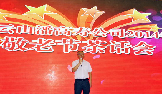 敬老節前夕,我司在東江萬豪酒家召開2014年度金秋敬老茶話會。500多名退休職工歡聚一堂。公司班子成員、各部門總監及工會各分會主席出席茶話會。董事長總經理楊東升,紀委書記、工會主席梁志平分別致詞祝酒,感懷老員工們為企業所做的貢獻,并祝他們健康長壽,欣祝企業前程錦繡。