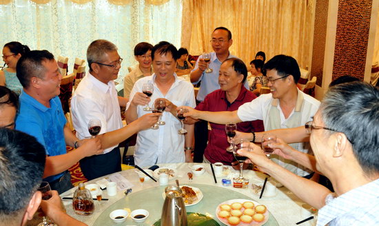 紀委書記、工會主席梁志平向退休員工祝酒