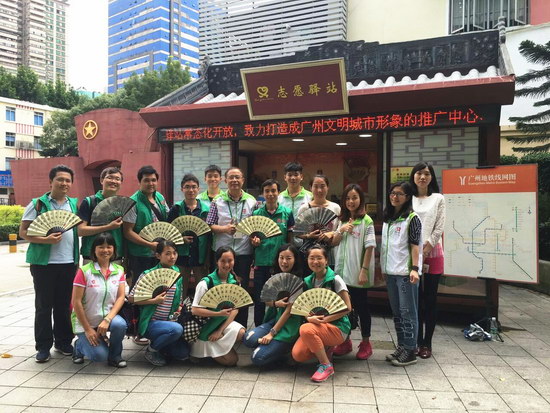 綠肺青年志愿者與“團一大”紀念廣場志愿者驛站站長甘永樂互動交流