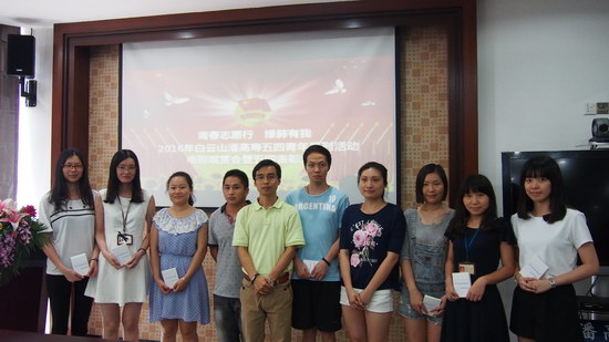 525日,五四青年系列活動之“電影觀賞會暨五四表彰大會”在辦公樓一樓會議室進行。公司紀委書記、工會主席梁志平,黨委辦主任、行政總監侯旭然出席表彰大會,對本次“青春志愿行?綠肺有我”系列青年活動表示充分肯定,鼓勵廣大團員積極進取,立足崗位,不斷提高個人能力和素質,增強信心,凝心聚力,為潘高壽聚焦發展“防霾護肺”領域、實現“十三五”良好開局共同努力,并為潘高壽2015年度“優秀團員”、超齡離團團員、以及參與“綠肺關愛大行動”的志愿者隊伍頒獎。與會團員現場觀看了電影《可愛的你》。