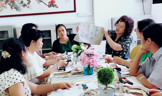 組員鄧潔兒給大家講刺繡中針腳的刺繡方法:菊花繡、結(jié)粒繡、鎖鏈繡等繡法并演示。李立經(jīng)理與大家分享了她從零到現(xiàn)在的小有成就的心路歷程:可當(dāng)真正靜下心來學(xué)習(xí)刺繡的時(shí)候,你會(huì)發(fā)現(xiàn)其實(shí)并沒有你想象中的那么難,一針一線穿出來的是對(duì)熾熱生命和美好生活的向往。本次刺繡以生活為主題,在環(huán)保袋上DIY設(shè)計(jì)圖案并進(jìn)行刺繡,組員們將利用業(yè)余時(shí)間完成,期待她們美美的作品……很多人都覺得這門屬非物質(zhì)文化遺產(chǎn)的刺繡離生活很遙遠(yuǎn),其實(shí)刺繡的緣起源于生活,是屬于家家戶戶女子必備的女紅技能。可喜是,刺繡在回歸生活,與大眾的生活發(fā)生鏈接。不妨偷閑,泡一壺茶,針線為伴,心生美好。